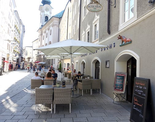 Der »Alte Fuchs« ist nicht nur kulinarisch ein typisches Salzburger Highlight: Ob in kleiner oder grösserer Freundesrunde, wir haben Platz für jede Gelegenheit. Im alten Gewölbe der traditionellen Gaststubn geniesst man gesellige Gemütlichkeit, wie in alten Zeiten. Und wer unter sich sein will, zieht sich in den kleinen »Fuchsbau« zurück. Im Sommer ist unser Gastgarten in der Linzergasse ein wunderbarer Ort um das lebendige Altstadt-Treiben zu beobachten. Zusätzlich ist unser schattiger Innenhof nicht nur an heißen Sommertagen ein beliebter Rückzugsort – auch in der kalten Jahreszeit gibt´s hier die »Alter Fuchs Winterlounge« mit kleinen Schmankerln und Heißgetränken.